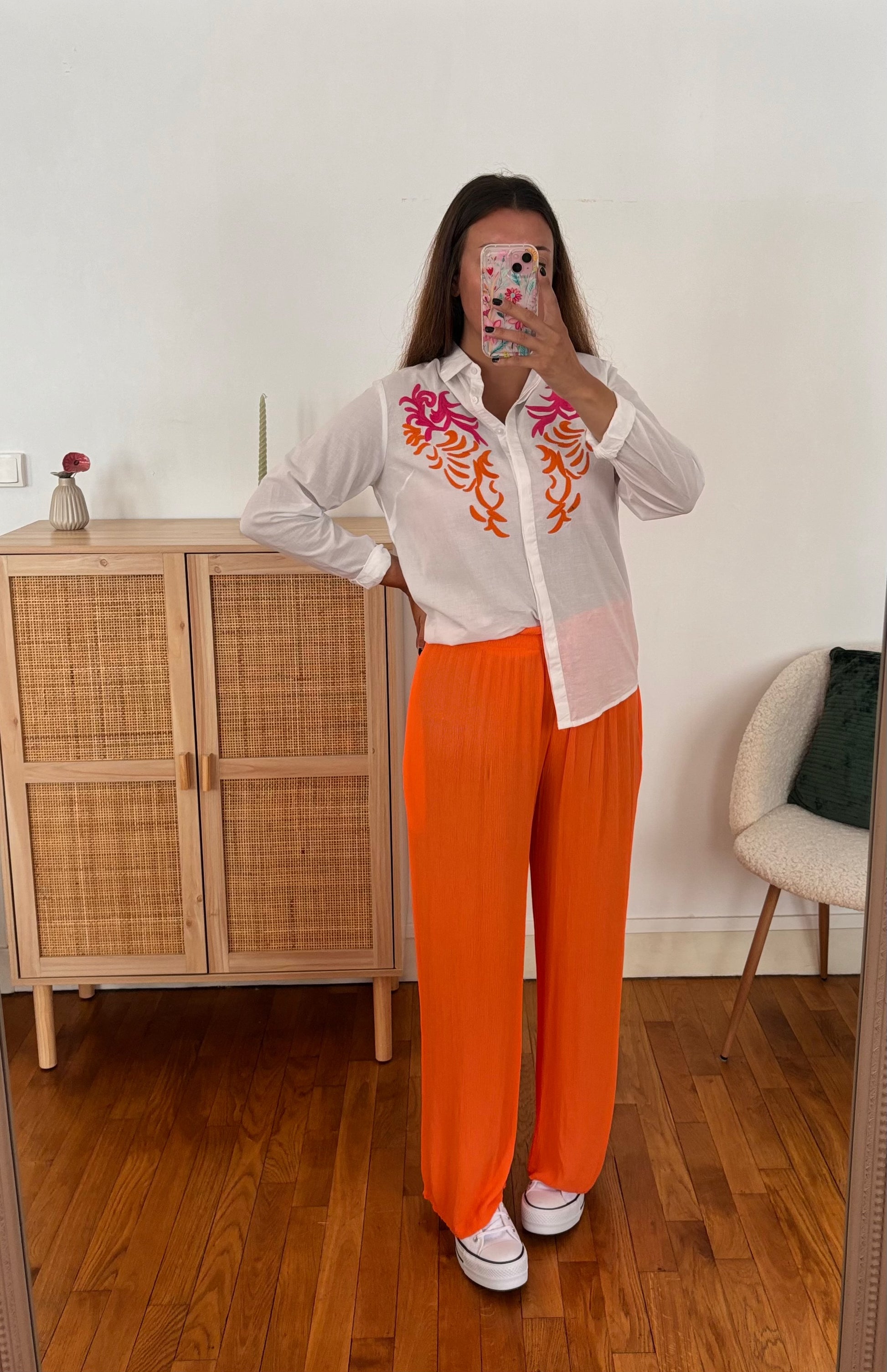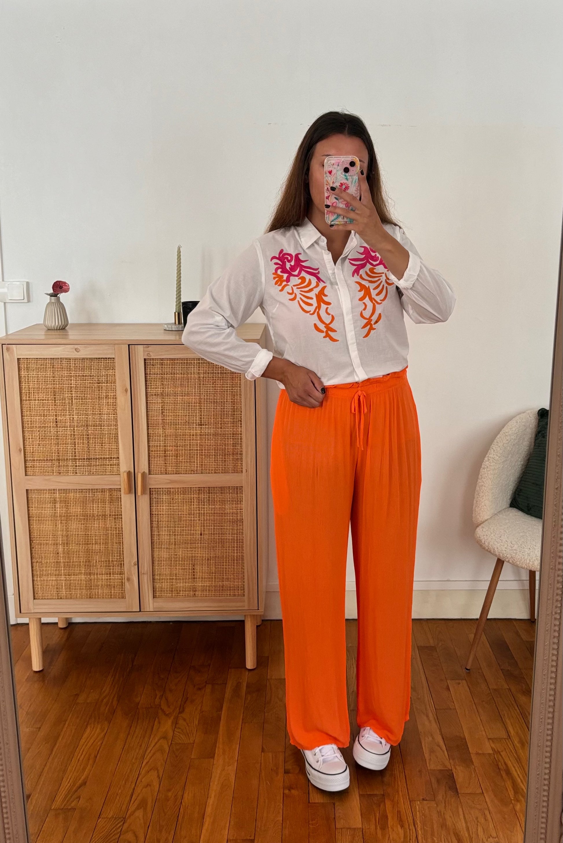 Broderie orange et rose